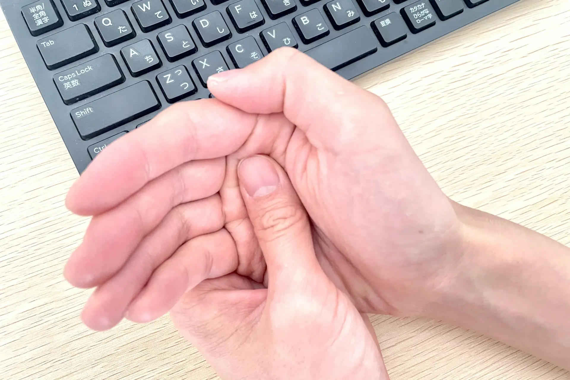 肘の内側には手首や手指を曲げるための筋肉が付いており、この筋肉の使いすぎによって炎症が生じることで肘に痛みが出ています。